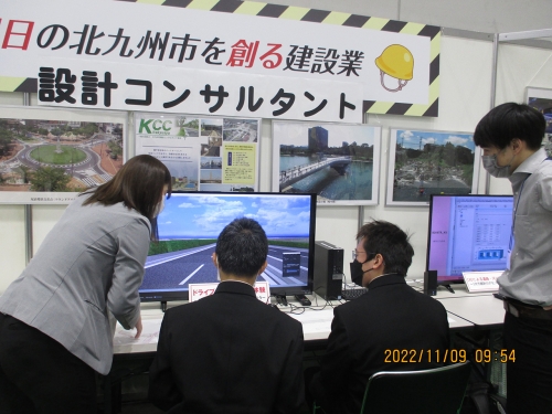 北九州市産業経済局主催北九州ゆめみらいワーク」の「明日の北九州市を創る建設業ブース」へ出展し、北九州市と一体となって「若者が選ぶ職場」「若者が定善する職場」となるように建設コンサルタント業務のPRに務めました。