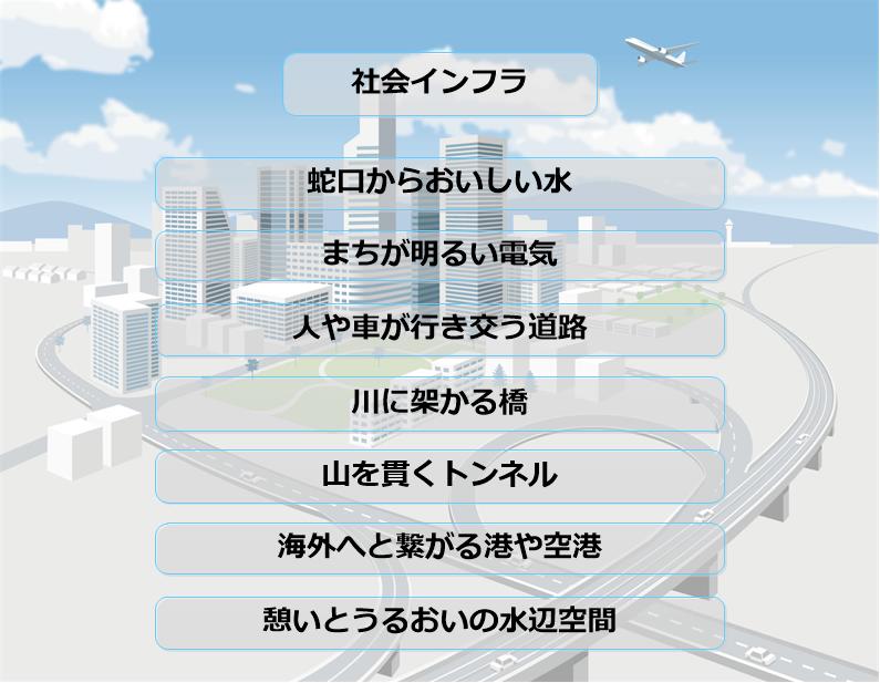 私たちの安全・安心・便利・快適な生活は、さまざまな社会資本に支えられています。